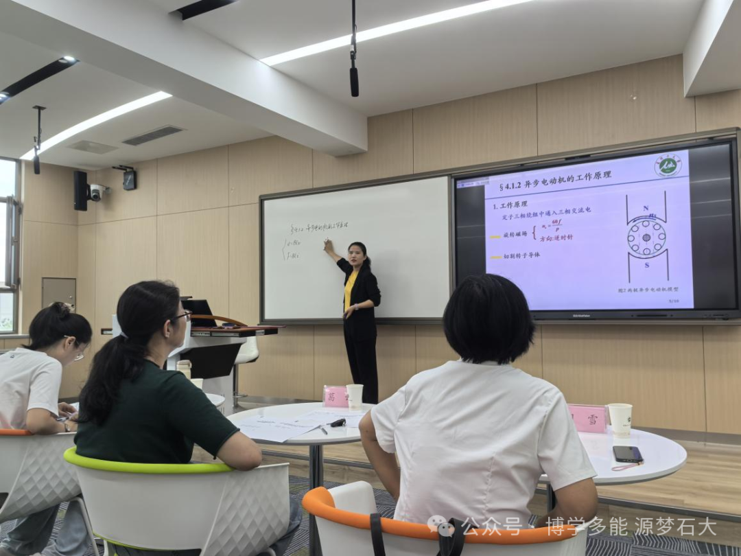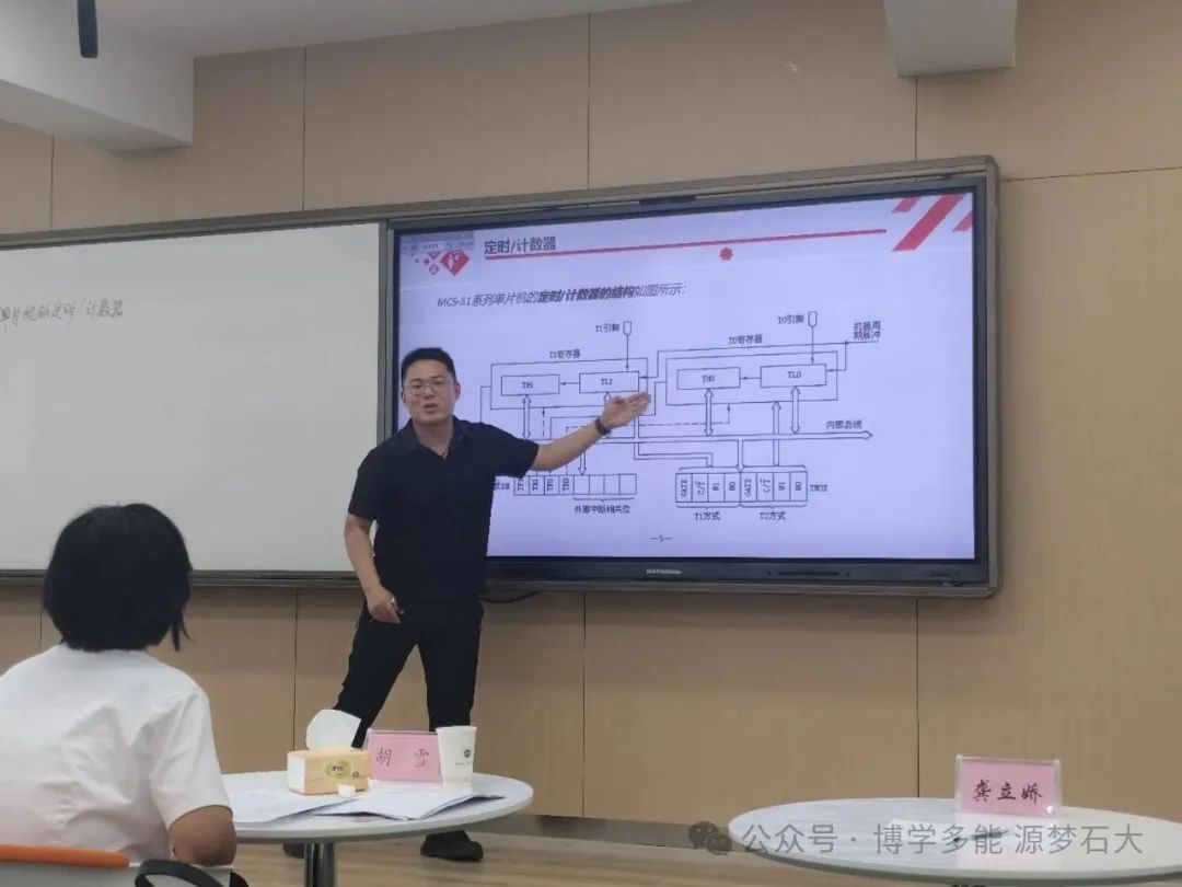 比赛现场气氛热烈,来自电气工程系的晁雪薇老师、曾兆权老师,以及新能源科学与工程系的赵家伟老师、李仁杰老师、坚一明老师依次登台,展现了各具特色的教学风格与深厚的学科底蕴。晁雪薇老师深入浅出地讲解了异步电机的结构和运行状态的知识点,运用丰富的案例与生动的语言,将复杂的概念清晰呈现给员工。曾兆权老师以其扎实的专业理论知识为依托,注重引导员工思考,通过互动式教学激发员工的求知欲和创新思维。赵家伟老师则凭借在单片机领域的丰富经验,将理论与实践紧密结合,为员工描绘出单片机学科在实际应用中的广阔前景。