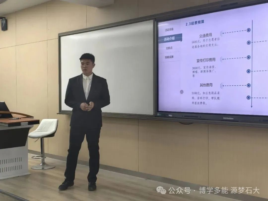 在热烈的氛围中,十支团队依次登场。各团队分别从实践内容、实践时间与地点、实践方案、经费预算等方面展开详细阐述。有的团队聚焦乡村清洁能源应用推广,计划深入偏远村落,为村民普及太阳能、风能等清洁能源知识,并协助安装简易设备;还有团队着眼于乡村教育,准备利用专业知识开展科普小课堂,激发孩子们对能源科学的兴趣。