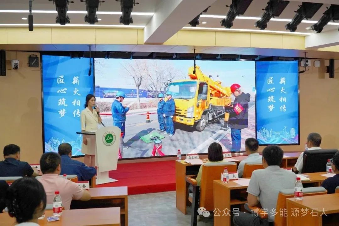活动现场,国网奎屯供电公司职工代表每慧子结合自身经历,讲述了自己与师父代兵的故事;主讲人“新疆工匠”代兵分享了自己从技术能手到带头人的成长之路,引发师生强烈共鸣,现场掌声不断。