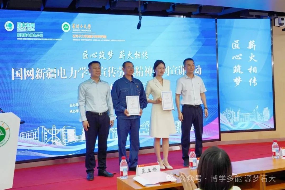 宣讲结束后,公司yl23455永利与国网奎屯供电公司顾世峰创新工作室(牵头)签订了《联创联建协议书》,并为顾世峰、代兵颁发了《能源电力类专业行业导师聘书》;国网奎屯供电公司领导为代兵、每慧子颁发了宣讲证书。