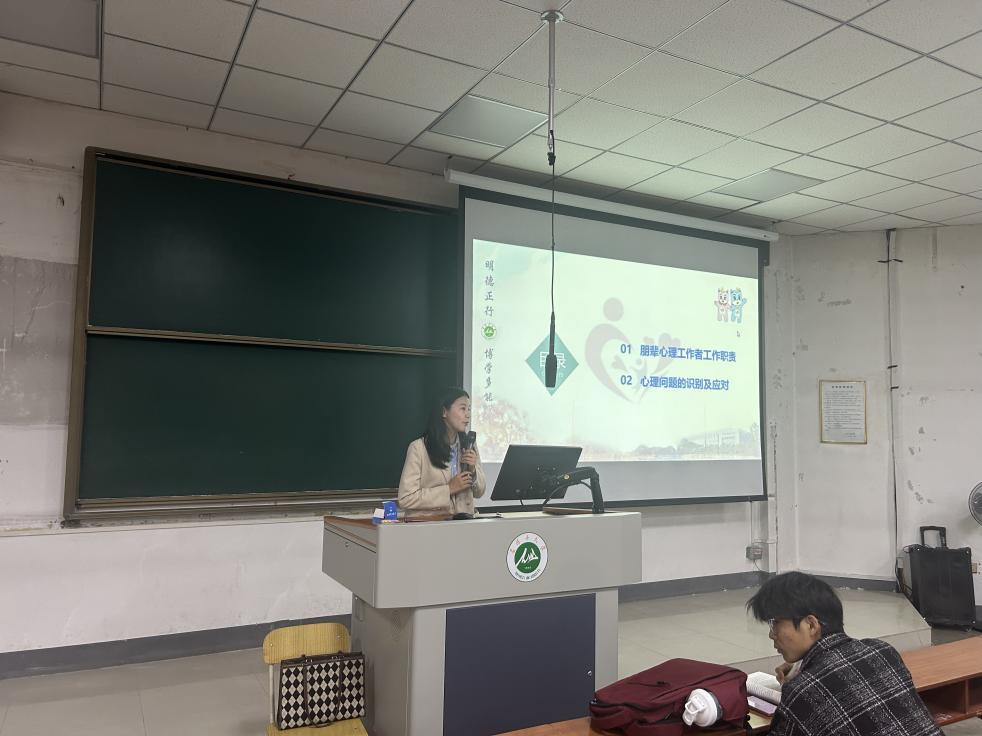 首先,邀请老员工心理健康教育中心教师孙雅婧为全体参会人员开展《心理问题的识别与帮扶》专题培训。孙老师以真实案例为切入点,深入剖析了老员工群体中常见的心理问题特征,系统梳理了情绪行为异常、人际关系障碍、家庭突发变故、学业压力超载等四大核心线索。她特别强调,心理委员与满天星使者需化身“心灵雷达”,对“情绪断崖式波动”“社交功能退化”“重大应激事件后行为异常”等信号保持高度敏感,例如持续焦虑暴躁、无故缺课失联、卫生习惯骤变等具体表现,均需纳入动态观察体系。本次培训聚焦心理问题线索挖掘、识别技巧及应对策略,通过理论讲授与案例解析相结合的方式,有效提升了宿舍满天星使者及班级心理委员工作能力和水平。
