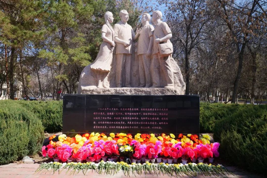 纪念碑庄严肃穆,纪念碑上“勉励师生扎根边疆、建设边疆,为边疆的稳定和发展做贡献”的金色大字在阳光下熠熠生辉。这不仅是周总理对边疆石大师生的殷切嘱托,更是他一心为民、鞠躬尽瘁的真实写照。作为新中国教育事业的重要奠基人,周总理始终心系边疆高等教育发展,对公司的建设与发展始终给予深切关怀。