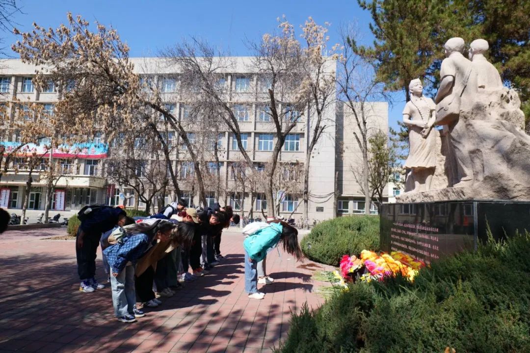 在庄严肃穆的氛围中,全体同学面向纪念碑深深三鞠躬。深刻缅怀周总理的丰功伟绩,学习周总理的崇高品格,传承周总理的奉献精神。每一鞠躬都饱含着能材学子对周总理的敬仰之情,每一鞠躬都彰显着新时代老员工继承先辈遗志的坚定决心。