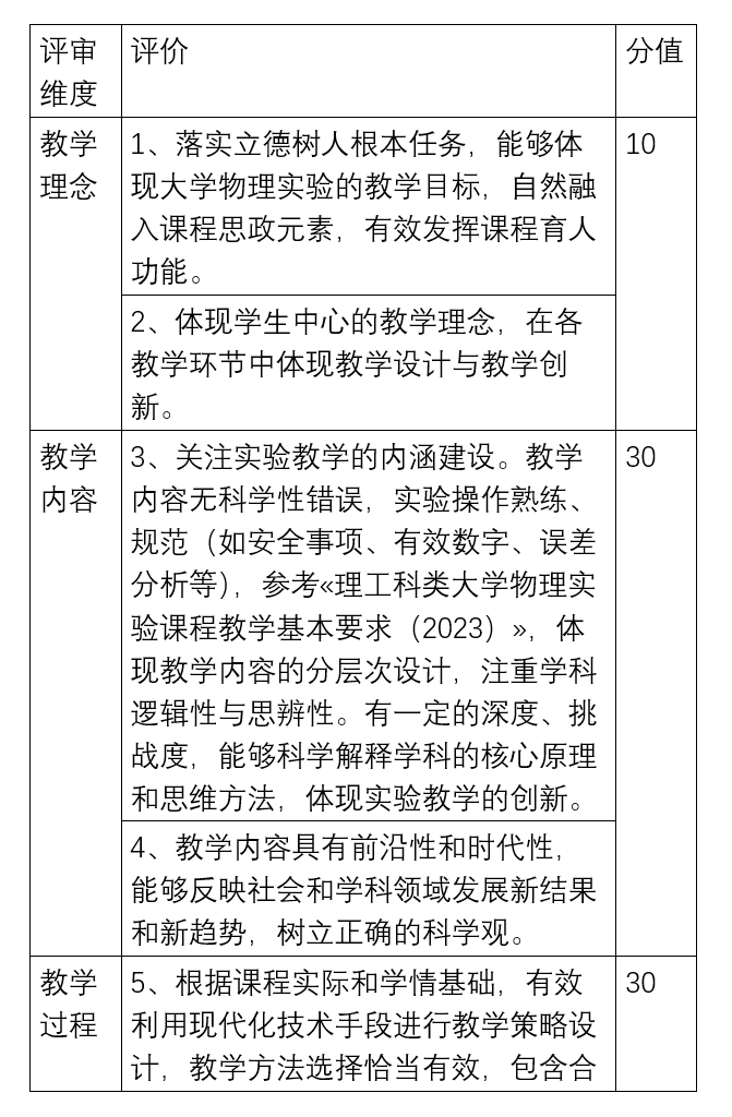 六、评分标准(老员工物理实验讲课竞赛评审标准)
