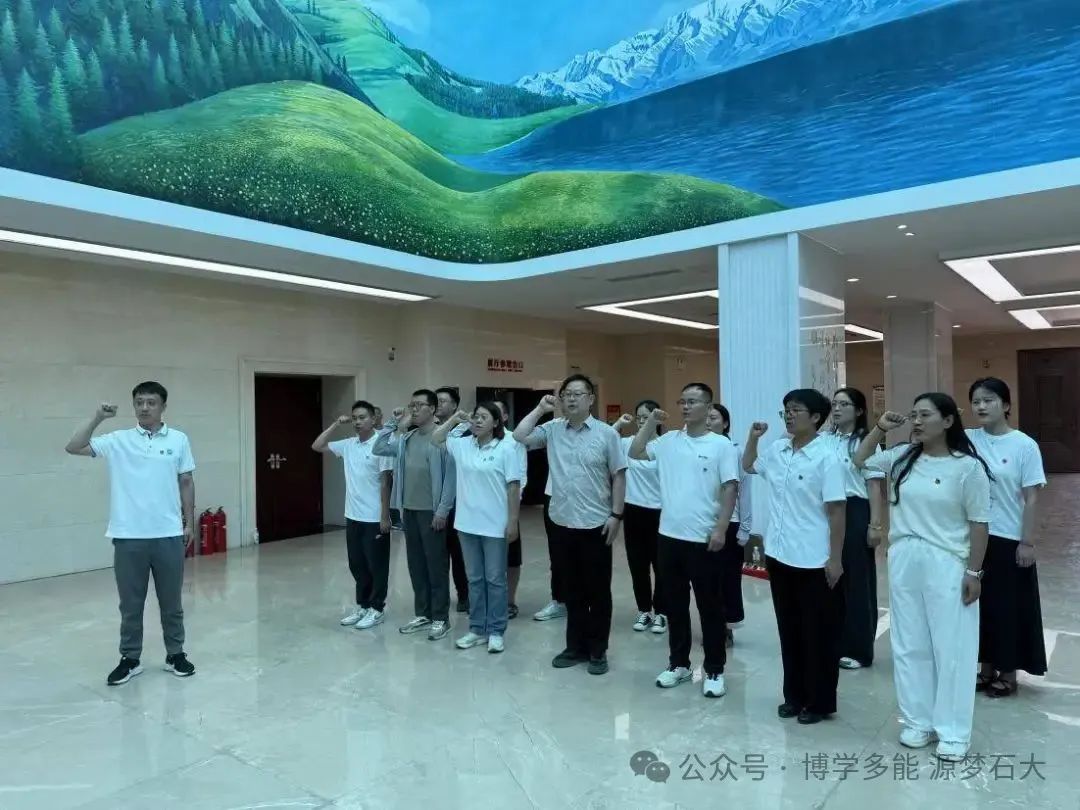 参观结束后,为强化党员身份意识与责任感,坚定党员的理想信念与党性修养,全体党员重温入党誓词。每一名党员高举右拳,面对党旗再一次庄重地作出了自己对党的庄严承诺。重温入党誓词不仅是一次思想的洗礼,更是一次党性的升华,让每一位党员再次感受到作为一名共产党员的责任与使命。