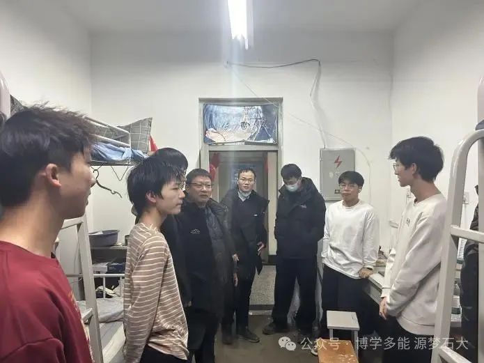 丁凯(右2)查看员工宿舍情况