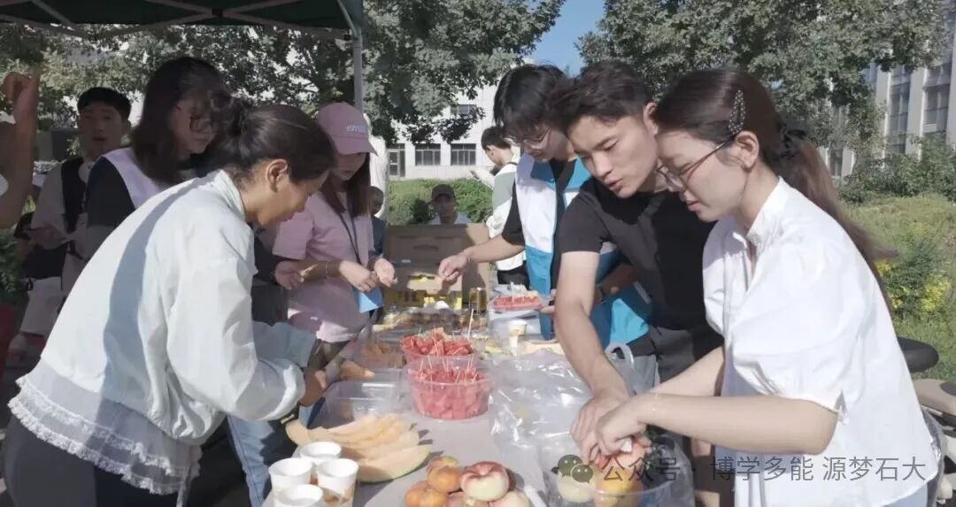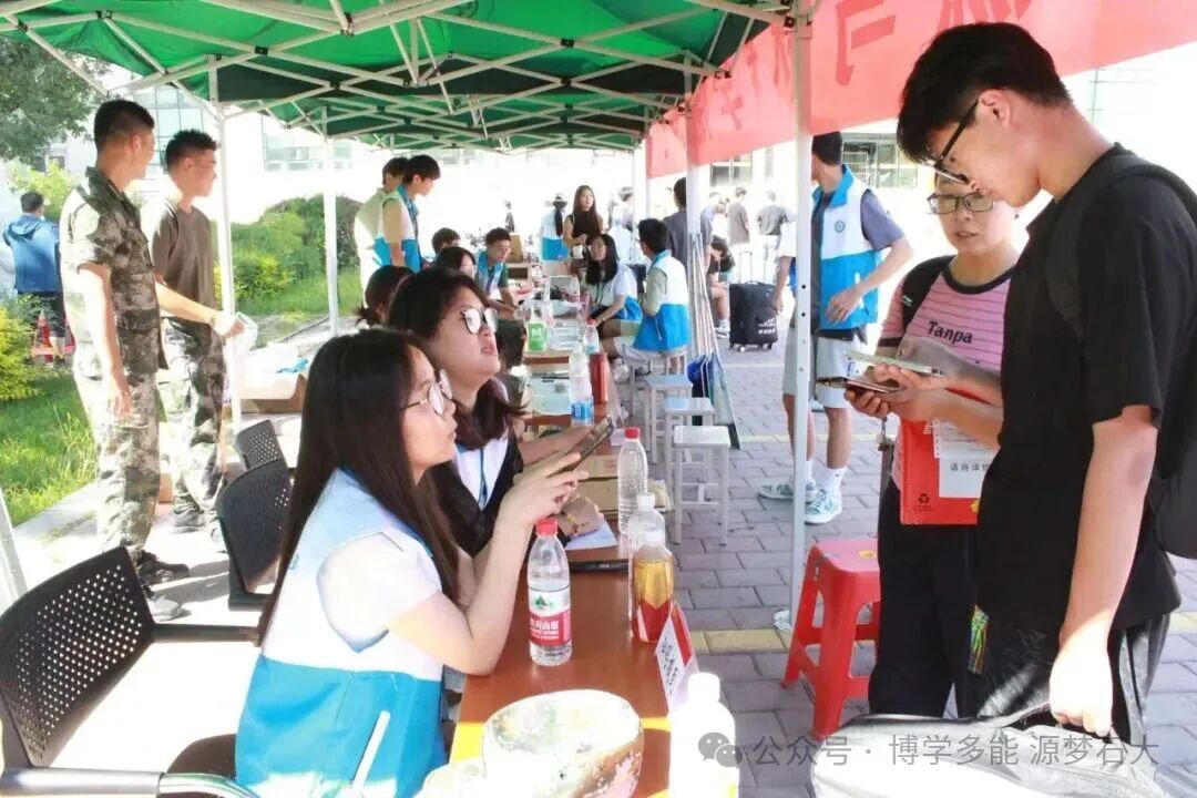 迎新点前,志愿者引导新生高效提交材料、完成注册。展台摆满的哈密瓜、葡萄等新疆瓜果,为远道而来的新生与家长驱散疲惫。公司还为家长送上定制帆布包、钥匙扣、折扇等特色礼品,让初遇满是惊喜与关怀,为梦想护航。