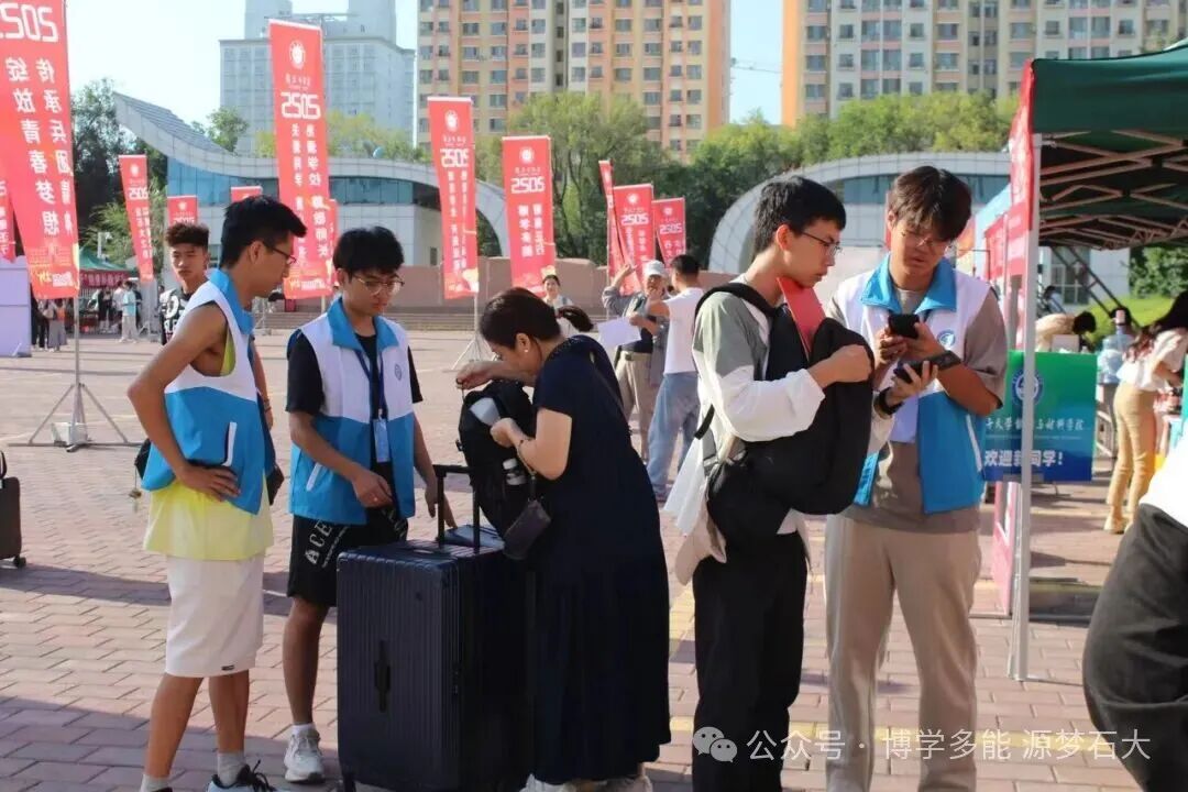 烈日下,学长学姐化身“搬运工”“指引员”,从校门口接过沉重行李,到宿舍楼下细致讲解校园路线,用忙碌的身影传递温暖,用耐心陪伴消除新生的陌生感。