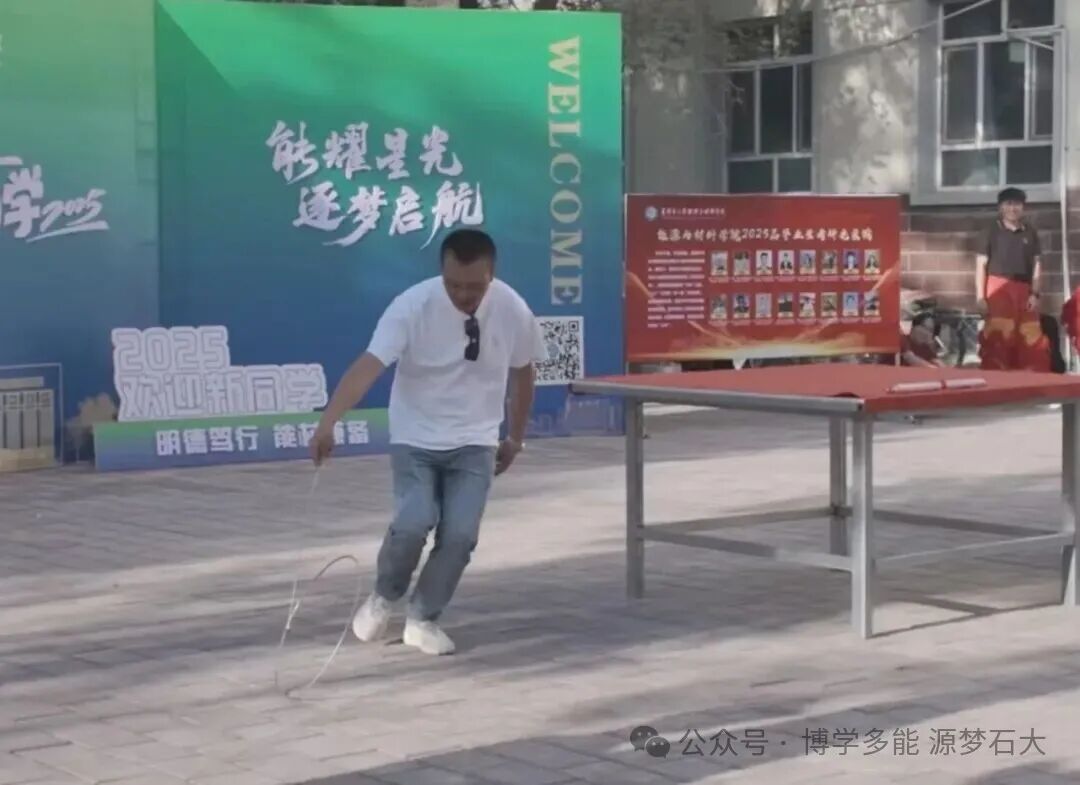 一旁的民俗项目体验互动区同样热闹,投壶瞄准、滚铁圈追逐、空竹翻飞,各项传统小游戏同步开启。新生与家长挽袖参与,或凝神瞄准,或快步追逐,欢声笑语此起彼伏,满是迎新的鲜活气息。