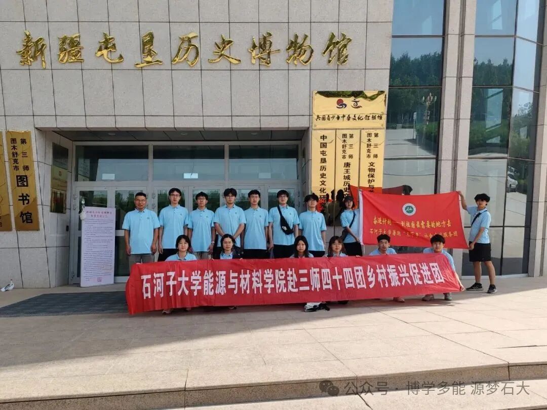 活动尾声,全体成员在新疆屯垦历史博物馆庄重的门楣前肃立合影。“新疆屯垦历史博物馆”的鎏金匾额被映照得格外耀眼,其沉淀的两千余年屯垦沧桑仿佛触手可及。与之交相辉映的,是队员们手中紧握的“yl23455永利集团三下乡服务团”鲜红旗帜,那抹跃动的红,如同青春热血在历史长河中注入的澎湃活力。