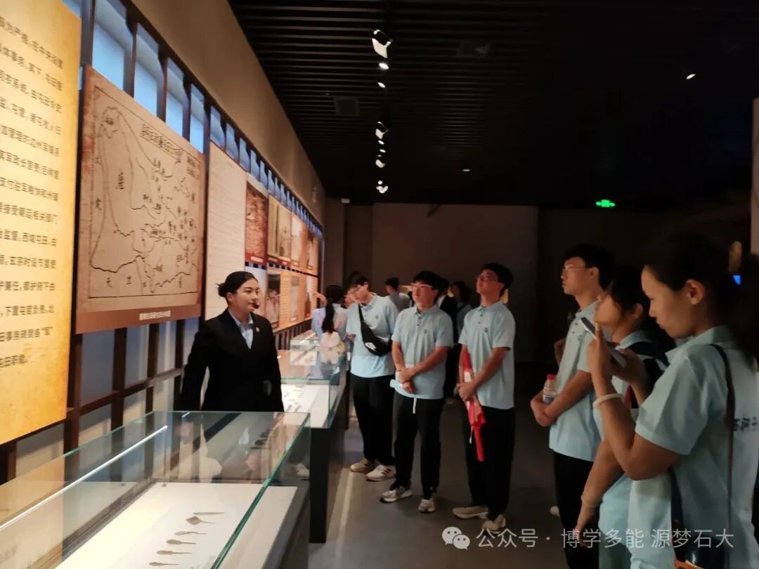 在讲解员的引导下,团队成员首先驻足于两汉屯田展区。泛黄的文书、斑驳的农具与生动的场景复原,共同勾勒出跨越两千余年的屯垦史诗。展柜中的汉印、石磨与箭镞静静陈列,印证了《汉书·西域传》“徙屯田于北胥鞬”的记载——专家考证此处即为第三师五十一团、五十三团范围内的西汉最大屯田区。面对这些见证,同学们不禁感慨:“未曾想到,两千多年前,先民们便在这片土地上开辟了绿洲。”