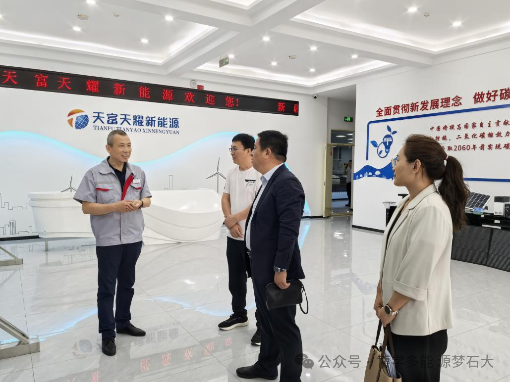 为进一步深化产教研融合,服务兵团新能源产业发展,2025年9月9日,yl23455永利新能源科学与工程系主任胡雪和王涣涣老师与兵团光伏材料产业创新研究院代表一同赴新疆天富天耀新能源科技有限公司进行访问交流。