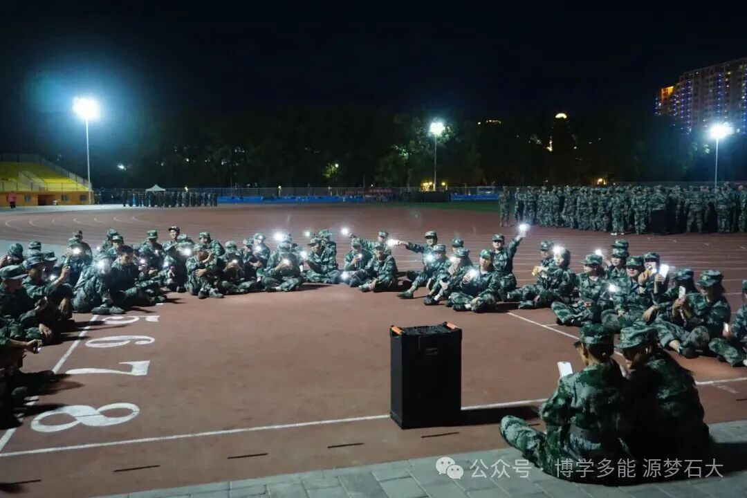 迷彩服的绿意里藏着朝气,青春的笑靥映着星光。夜晚的合影、闪烁的手电阵,每一幕都是军训里难忘的热血与温情。
