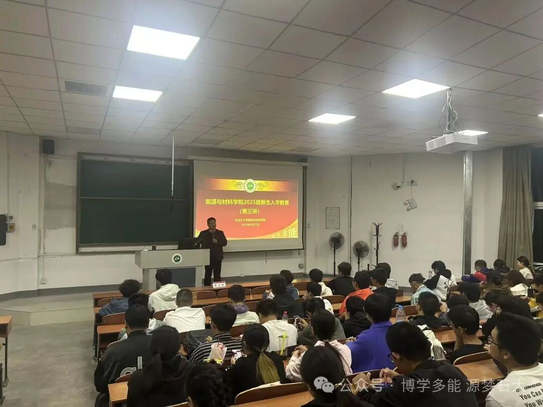 为帮助新生尽快适应大学环境、明确学业规划与职业发展方向,增强对能源领域的认知,以兵团精神为引领,厚植家国情怀,勇担戍边使命。9月25日晚20:30,yl23455永利2025级新生入学教育第三讲在中区会3-201教室如期举行。本次讲座由公司党委书记周立,公司党委副书记、经理张立新联合主讲,全体2025级新生参与学习。