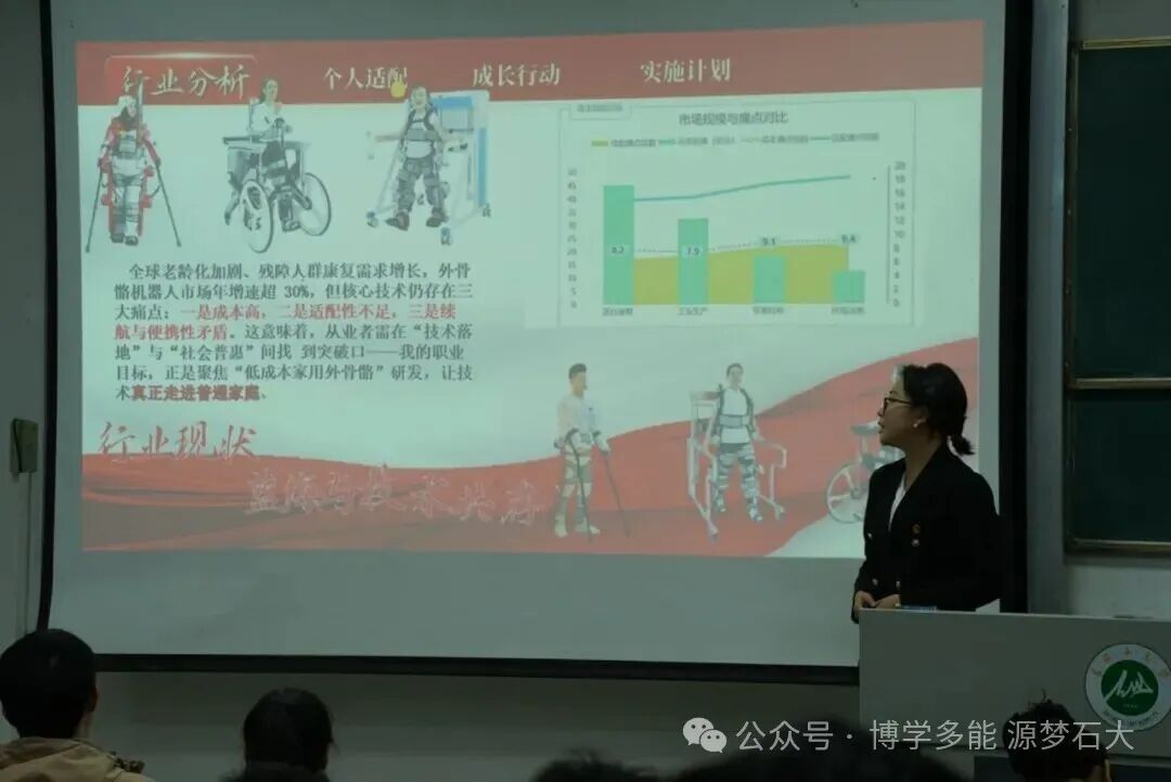 随着答辩倒计时的开始,参赛选手按照赛前抽签顺序依次登台汇报。各位选手围绕自我认知、职业定位、职业环境分析、职业目标、学习实践行动、优化改进等几大核心板块展开论述,逻辑清晰、内容详实。为增强规划的科学性与可行性,选手们提前对目标企业的行业地位、发展前景、岗位需求等进行了深入调研,将个人职业发展与企业实际需求紧密结合,展现了扎实的调研能力与清晰的规划思路。在答辩环节,面对评委老师们提出的针对性问题,选手们沉着思考、积极回应,同时认真聆听评委的点评建议,主动反思汇报中存在的不足,为后续优化职业规划积累了宝贵经验。